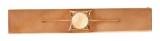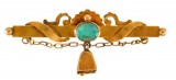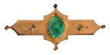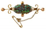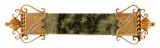 SERPENTINE BROOCH, c1905, with gold fittings (15ct; tot wt 13.53g; 66x17mm), by (Mark) Levinson, features a strip of serpentine between two decorated gold ends, pin-back ...