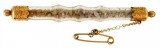 OPAL CRYSTAL BROOCH, c1915, with gold fittings (15ct; tot wt 7.25g; 68x6.5mm), by T(homas) M.Alcock, features a clear cylinder filled with opal chips and with ...