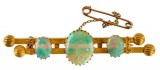 OPAL BROOCH, c1900, in gold (tested as 15ct; tot wt 4.29g; 48x12mm), attributed to maker, Duggin, Shappere & Co, features a double bar brooch with ...