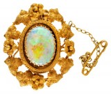 OPAL BROOCH, c1875, in voided gold (18ct; 8.64g; 34x28mm), by H St (Henry Steiner), features an oval opal claw set in a frame decorated with ...