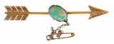 ARROW OPAL BROOCH, c1900, in gold (tested as 15ct; 6.47g; 69x11mm), by K. & Co. (Kilpatrick & Co), features an arrow with a claw set ...