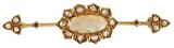 OPAL BROOCH, in gold (15ct; 6.12g; 45x8mm), by S.D.&Co (Stewart Dawson & Co), features a bar with a small circular white opal claw set into ...