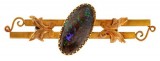 BLACK OPAL BROOCH, c1890, in gold (9ct; 4.45g; 50x12mm), by A.L.B (August L. Brunkhorst), features a decorative bar with a gold ball at each end ...
