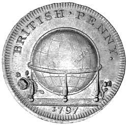 SKIDMORE'S GLOBE SERIES, penny 1797, KIng's College Chapel, Cambridge lettered edge, struck on thin convex ...