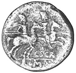 C. SCRIBONIUS, (c.154 B.C.), silver denarius (3.494 grams), obv. Roma helmeted head to right, X ...
