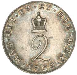 GEORGE III, Maundy penny, 1792, thin 1, wire money, (S.3760). Good extremely fine.
