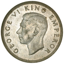 GEORGE VI, florin, 1946, type I (rounded back kiwi) and type II (flat back kiwi). ...