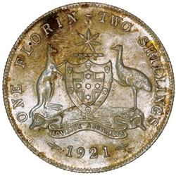 GEORGE V, florin, 1921. Frosty mint bloom, nearly uncirculated.
