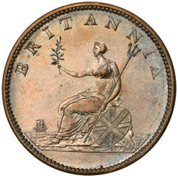 GEORGE III, fourth issue copper penny, 1806 (S.3780); halfpenny 1806 (S.3781); farthing 1806 (S.3782). A ...