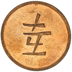 BRITISH NORTH BORNEO, Tenom Rubber Company, one cent in brass (P.72). Cleaned of encrustation otherwise ...