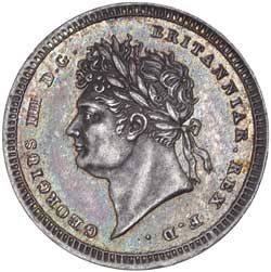 GEORGE IV, laureate head/garnished shield, sixpence, 1821 (S.3813). Lightly toned, nearly uncirculated