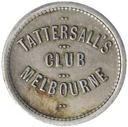 TATTERSALL'S CLUB, Melbourne, value stated checks for one shilling (2) and sixpence. Usual five hole ...