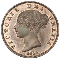 QUEEN VICTORIA, halfpenny, young head, 1859 (S.3949). Traces of mint red, even brown patina, good ...