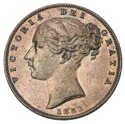 QUEEN VICTORIA, young head, copper halfpenny, 1855 (S.3949) and farthing 1853 (S.3950). Red and brown, ...