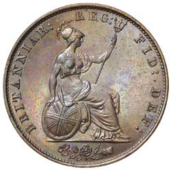 QUEEN VICTORIA, penny, bun head, 1861 (dies 6/D, S.3954). Brown and red, good extremely fine. ...