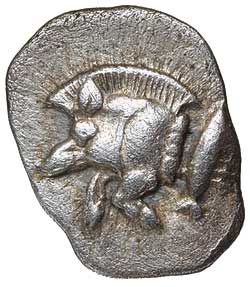 MYSIA, Kyzikos, (c.525-475 B.C.), silver hemiobol (0.43 g), obv. forepart of boar to left; to ...