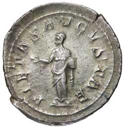PLAUTILLA, wife of Caracalla, (c.A.D. 202-205), silver denarius, issued 204, (3.38 g), obv. draped bust of Plautilla to right, around PLAVTILLA AVGVSTA, rev. Venus naked to waist standing half left with apple and palm, at side a shield, before her cupid, around VENVS VICTRIX, (S.7074, BMC 429, RIC 369, RSC 25); Otacilia Severa, wife of Philip I, (A.D. 244-249), silver antoninianius, Rome mint, (4.43 g), obv. diademed draped bust to right on crescent, around OTACIL SEVERA AVG, rev. Pietas standing half left, around PIETAS AVGVSTAE, (S.9158, RIC 130, RSC 43). Very fine and nearly extremely fine. (2)