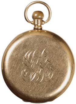 PRESENTATION HUNTER POCKET WATCH, American Waltham Traveller, USA, c1909, top wind, Dennison case in gold ...