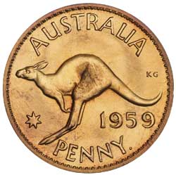 ELIZABETH II, Perth Mint proof penny, 1959. FDC.