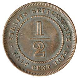 STRAITS SETTLEMENTS, Queen Victoria, half cent, 1862 (KM.5). Very fine with brown patination, scarce.