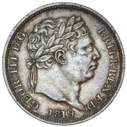 GEORGE III, new coinage, shillings, 1817 GEOE error and 1819 (S.3790). Very fine; good very ...