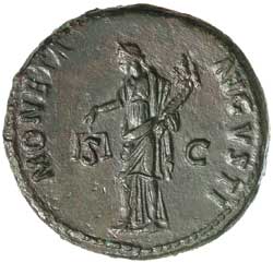 NERO, (A.D. 54-68), AE dupondius, Lugdunum mint, issued A.D. 64-67, (14.17 g), obv. radiate head to right, around NERO CLAVD CAESAR AVG GERM P M TR P IMP P P, rev. VICTOR IA AVGVSTI around, Victory advancing to left, holding wreath and mark of value II in exergue, SC across field, (S.1969, RIC 199, BMC 219); Domitian, (A.D. 81-96), AE as, Rome mint, issued A.D. 92-94, (12.7 g), obv. laureate head of Domitian to right, around IMP CAES DOMIT AVG GERM COS XVI CENS PER P P, rev. around MONETA AVGVSTI, Moneta standing to left, holding scales and cornucopiae, S C across field, (S.2807, RIC 756, cf.C.332). Toned, very fine. (2)