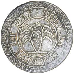 MAURITIUS, French, twenty five sous (1822) and fifty sous (1822) (KM.1, 2). Good very fine; ...