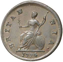 GEORGE III, first issue, farthing, 1773 (S.3775). Extremely fine.