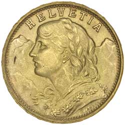 SWITZERLAND, ten francs, 1913B; twenty francs, 1935B, 1947B, 1949B (KM.36, 35.1, .2). Extremely fine - ...