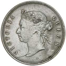 HONG KONG, Queen Victoria, one dollar, 1866, 1868 (KM.18). First coin, obverse with contact marks ...