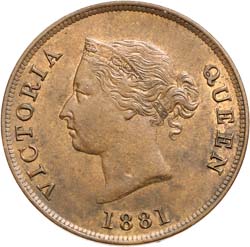 CYPRUS, Queen Victoria, one piastre, 1881H (KM.3.2). Subdued nearly full original mint red, uncirculated and ...