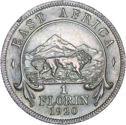 EAST AFRICA, George V, florin, 1920A (KM.17). Very fine and rare.