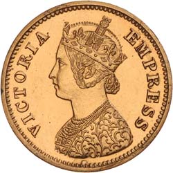 INDIA, British, Queen Victoria as Empress, copper prooflike restrike half anna, 1893 (KM.487). Golden red ...