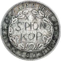 ANGLO-BOER WAR TRENCH ART, South Africa, ZAR, Kruger silver shillings, the first dated 1897 with obverse finely engraved to add a pipe to President Kruger's mouth and a patterned hat to his head; the second with date altered to 1900 and with obverse finely engraved to add a pipe to President Kruger's mouth and a patterned hat to his head, the reverse with engraved addition to legend of, 'Relief Of Ladysmith' and the centre details removed and engraved, 'XX/Spion/Kop'; the last undated and with obverse finely engraved to add a pipe to President Kruger's mouth and a patterned hat to his head, the reverse design has been removed and engraved with a crowned cross with stars and a central lion all within a wreath (the crest of NSW Military Forces) and at the top, 'N S W', and at the base, 'Citizen Bushman'. Very fine. (3)