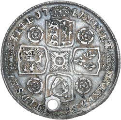 GEORGE II, old head, proof crown, 1746 (S.3690). Evidence of double striking or overstriking of ...