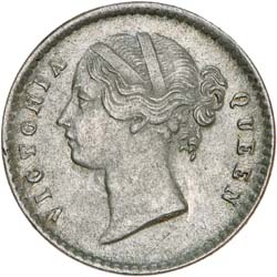 INDIA, British, copper half pice, 1853 (KM.464) (illustrated); 1862 (KM.466); 1885 (2), 1886, 1887, 1888, ...