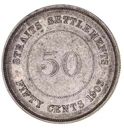 STRAITS SETTLEMENTS, Queen Victoria, silver fifty cents 1896 (KM.13); Edward VII, silver fifty cents 1903. ...