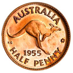 ELIZABETH II, Perth Mint proof halfpenny, 1955. Red FDC.