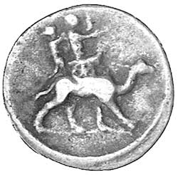 ROME, tesserae or admittance tickets, Tiberius left/111; two figures riding a camel right/XII; spinitra or ...
