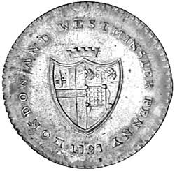 DENTON & PRATTENT'S LONDON AND WESTMINSTER PENNY, 1797, Saddlers Hall obverse, lettered edge struck on ...