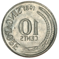 INDIA, aluminium twenty paisa (1982-1992), rev. blank; Malaysia, copper-nickel one ringgit, nd obv. and rev. blank, lettered edge; Singapore, 1981, ten cents, brockage of reverse. Uncirculated. (3)