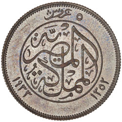 EGYPT, Ahmed Fuad I, proof five, ten and twenty piastres, 1933 (AH 1352), London mint (KM.349, 350, 353). Unevenly toned, nearly FDC. (3)