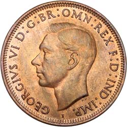 GEORGE VI, 1943 Melbourne Mint, Perth Mint 1943Y. First coin with die breaks through ...