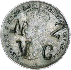 CEYLON, estate tokens, Lee, Hedges & Co., Colpetty Mills, 1867, holed and stamped 73 on back (Pridmore 61); C.W. rev. R over B, number plate in middle 5903, also countermarked with EIC bale mark (unrecorded); GPO Ceylon token in nickel; ten cents 1913 countermarked NZ/VC on obverse; Ceylon mounted Rifle silver medals for sports, by Phillips, Aldershot (uninscribed). Fine - extremely fine. (6)
