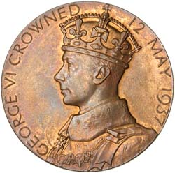 CORONATION OF GEORGE VI, 1937, medallion in yellow bronze (57mm) by P.Metcalfe (BHM 4314; Eimer ...