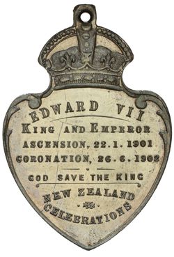 CORONATION, 1902, struck in silver (15mm), by A.Kohn (Auckland), ring top suspension (M.1902/8). Pitted, fine ...