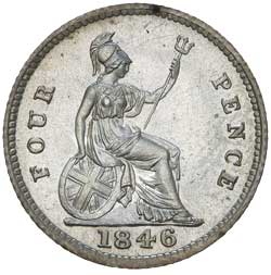 WILLIAM IV - QUEEN VICTORIA, Colonial Britannia groats, 1836, 1837, 1838/8 sideways, 1839-46, 1848, 1849, 1852, 1854, 1855 (S.3837; 3913); three half pence, 1834, 1835/4, 1842, 1843 (S.3939; S.3915). The 1846 choice, the 1852 rare in this condition, generally fair - uncirculated. (20)