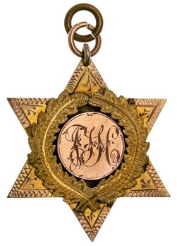 O.A.S. (Otautau Athletic Society), handcrafted in gold (9ct, 7.58g, 32x35mm), by W.J.Wesney (Otautau), ring top suspension, obverse inscribed 'IFH', reverse inscribed 'First/120 Yds/Hurdles Hcp/O.A.S./22.3.11'; NZAA (New Zealand Amateur Athletics), NZ Amateur Championship, handcrafted medal in gold (15ct, 15.75g, 29mm), by D&Co, ring top suspension, obverse inscribed 'February/19/12/Invercargill', reverse inscribed 'N.Z.Amateur Championship/Hop/Step & Jump/F Hazlett.'; another but in silver (31mm), no maker, ring top suspension, obverse inscribed 'Feb/19/13/Wellington', reverse inscribed 'N.Z.Amateur Championship/Hop. Step/& Jump./Championship/F.Hazlett/2nd'; another identical to previous, obverse inscribed 'Feb/19/14/Dunedin', reverse inscribed 'N.Z. Amateur Championship/120 Yds/Hurdles/Championship/F.Hazlett/2nd'; another identical to previous, obverse inscribed 'March/19/15/Wgton', reverse inscribed 'N.Z. Amateur Championship/440 Yds/Hurdles/F.Hazlett./2nd'; Otautau Patriotic Demonstration, handcrafted in gold (9ct, 7.92g,29.5x35mm), by W.J.Wesney (otautau), ring top suspension, obverse inscribed 'JFH', reverse inscribed 'Otautau Patriotic/Demonstration/Second/Hop Step & Jump/Southland Championship, 43 Ft 5 Ins/14.4.15'. Very fine - extremely fine. (6)