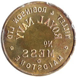 ROYAL NAVY MESS, Maidstone, tin (50mm), uniface, obverse, "Willet & Robinson Ltd / Royal Navy ...