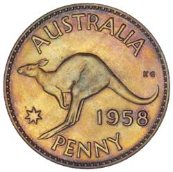 ELIZABETH II, Melbourne Mint proof set, 1958. Penny toned, otherwise FDC. (5)